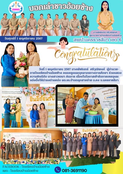ร่วมแสดงความยินดีกับ นางสาวรจนา คิดการ เนื่องในโอกาสเข้ารับการบรรจุและแต่งตั้งให้ดำรงตำแหน่ง ผอ.รร.บ้านตลุกสาหร่าย