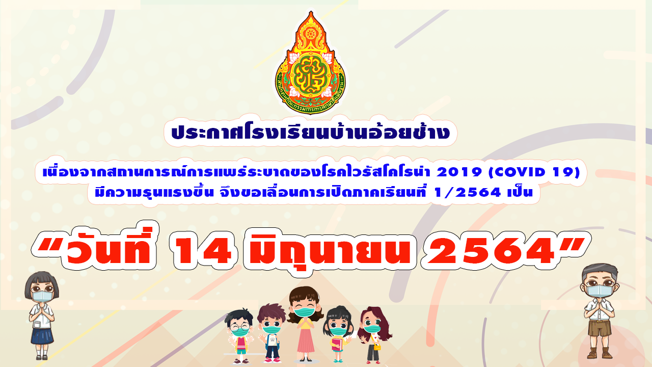 ทางโรงเรียนบ้านอ้อยช้าง จึงขอแจ้งประกาศการเลื่อนเวลาเปิดภาคเรียนที่ 1 ประจำปีการศึกษา 2564